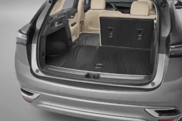 The Buick Accessories Integrated Cargo Liner covers the cargo area floor and the back of the rear seats to help provide protection from scratches and stains when carrying items of various sizes. Sometimes called custom floor mats or weather mats, this cargo liner covers previous wear and helps protect against future wear caused by everyday use. It articulates with the rear seatbacks, conveniently allowing for use with seatbacks in the up or down position.